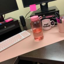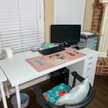 Since quarantine knocked me back to working at home (attorney), and we have a built in desk in the kitchen (we have A home office/music room but it’s not super conducive to my working since my husband also works at home), I use my laptop at home but I like to have the separate mouse and didn’t have a mouse pad.