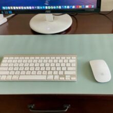 It's perfect for my Apple wireless keyboard and mouse. It protects the main work area of my desk while not interfering with my laptop/external monitor arrangement and other desktop items. The colors are even better than I had expected. the orange is more of a soft peach color, and the green is a silvery sage color. The pad arrived rolled with tissue paper in a sturdy box with an enclosed silica packet. Love this product!