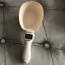 Our electronic scoop measures 9.1 x 3.7 in (23 x 9.5 cm) in totality, while the scoop measures 4.3 x 2 in (11 x 5 cm). The compact size makes it easy to store in your pet’s food bag or away in a drawer of items designated for your dog or cat.